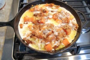 - Pour over the sweet potatoes evenly – DO NOT MIX